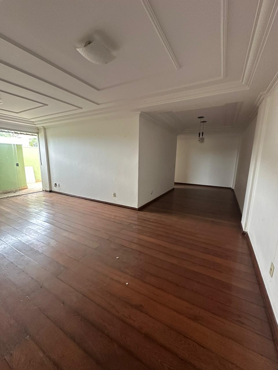 03 quartos sendo 01 suíte, sala 02 ambientes com varanda, cozinha com armário, banheiro social, área de serviço com banheiro, dependência, e 01 vaga de garagem