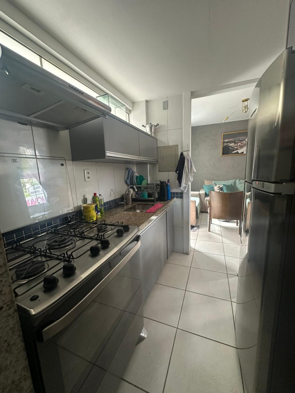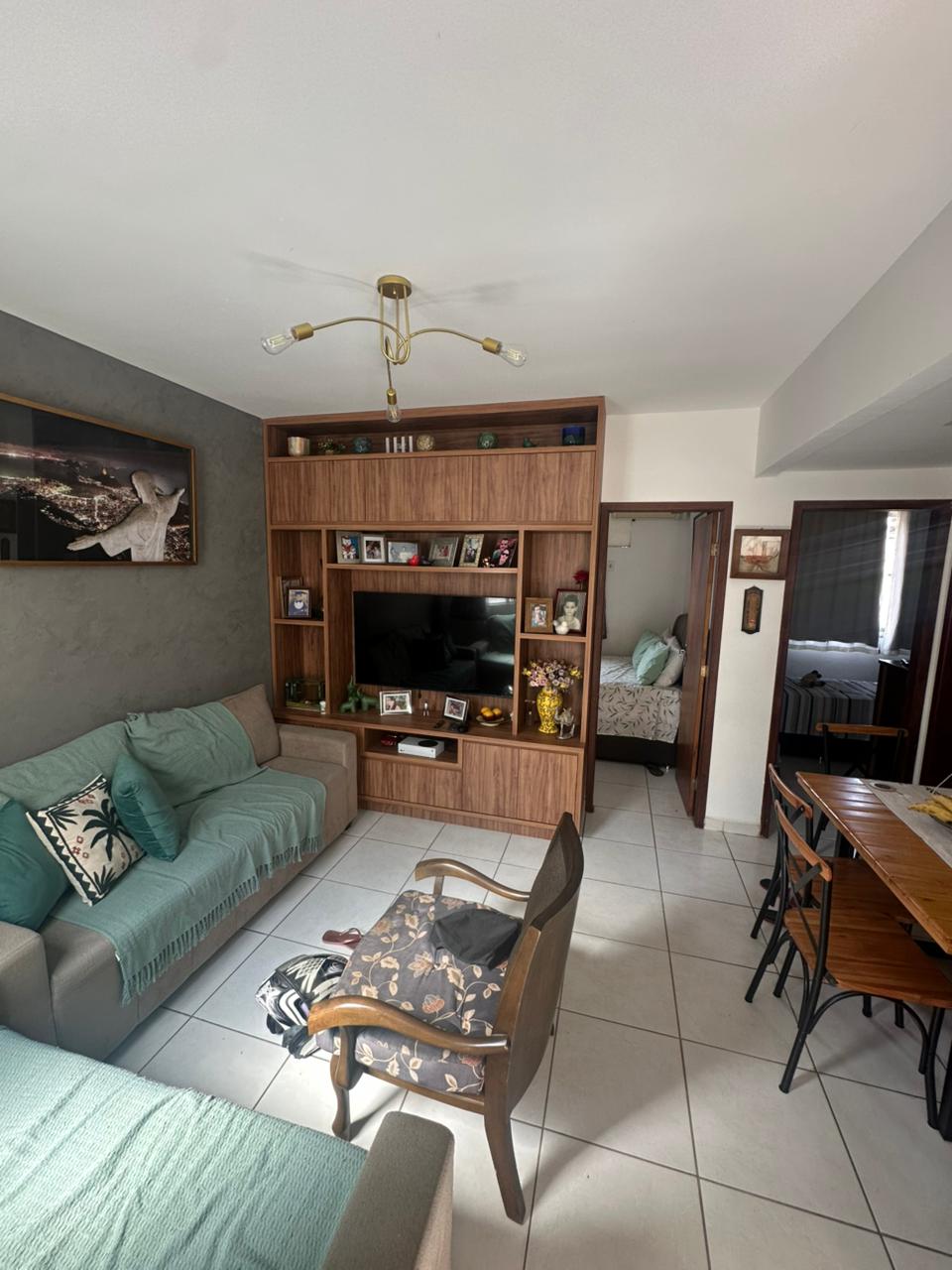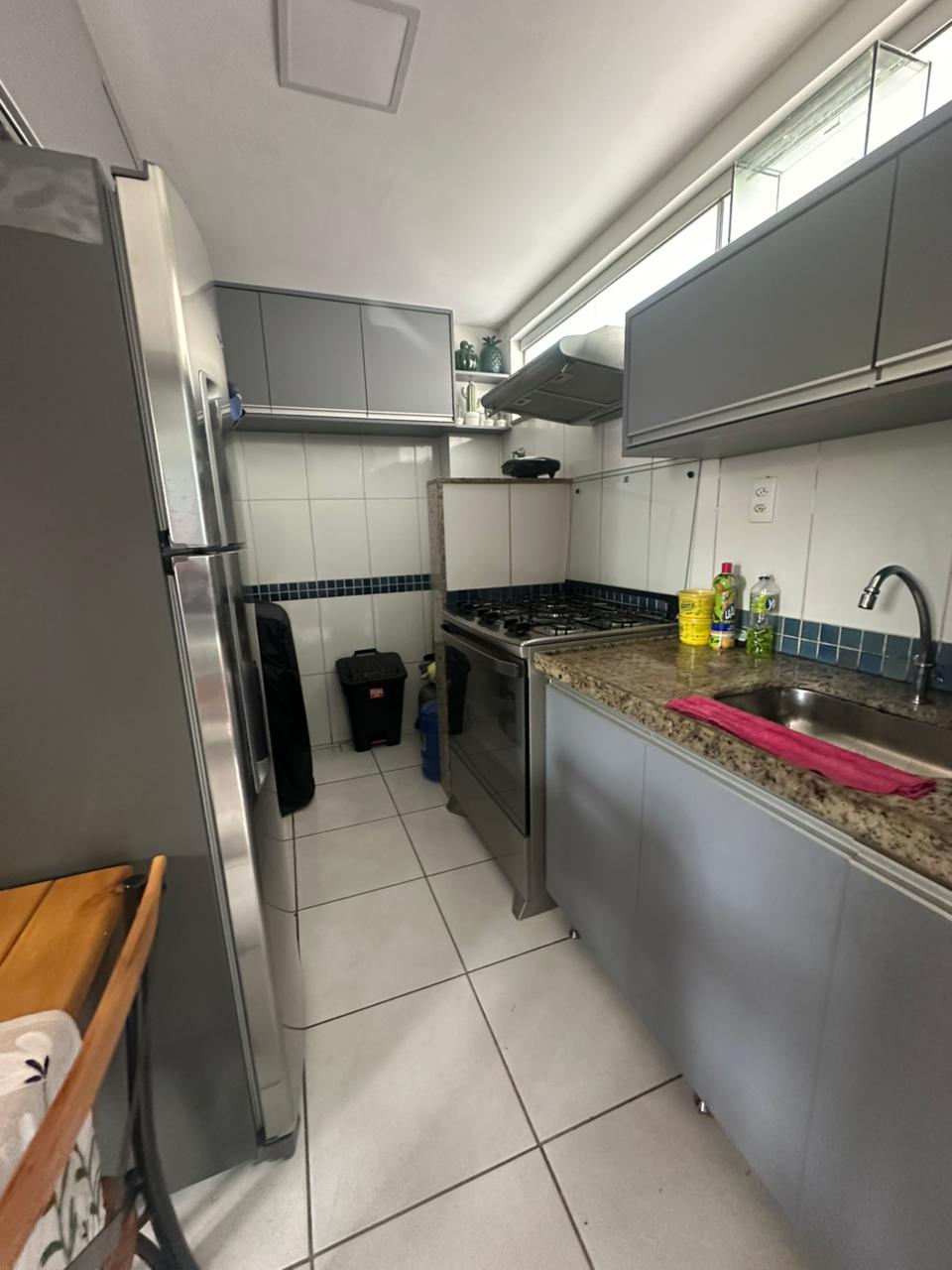 02 quartos, sala com painel de mdf, cozinha com armários, banheiro social, área de serviço e 01 vaga de garagem