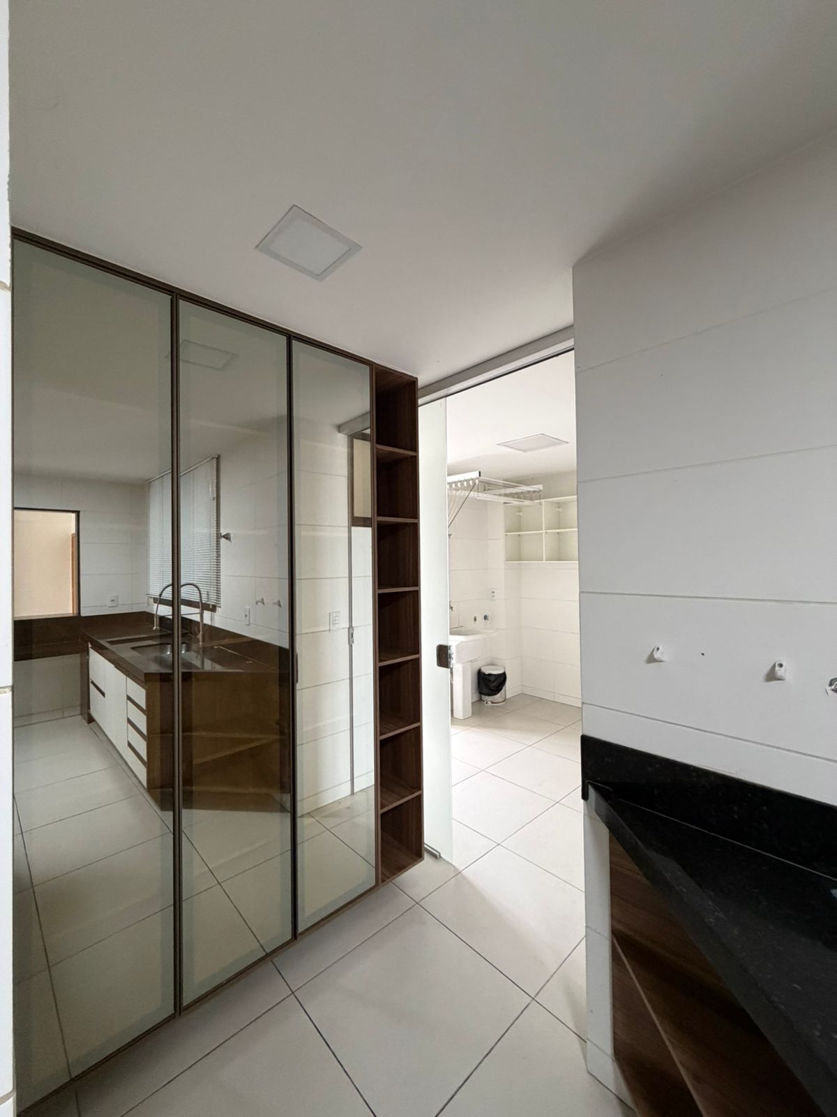 3 quartos sendo 2 suítes com móveis embutidos e ar- condicionados, sala 02 ambientes com móveis embutidos e varanda, cozinha com armários, banheiro social, área de serviço com banheiro e 02 vagas de garagem, com carregador para carro elétrico