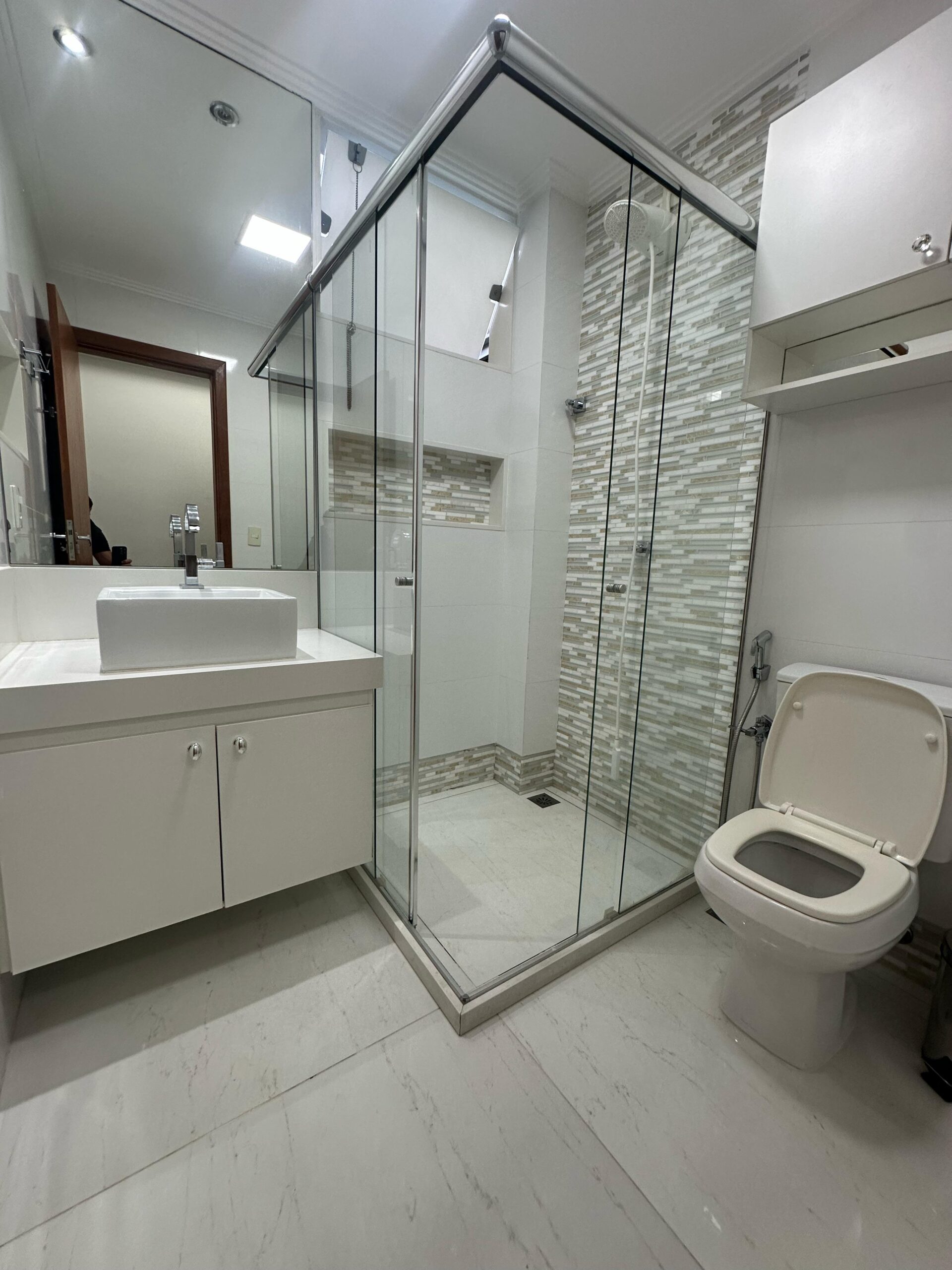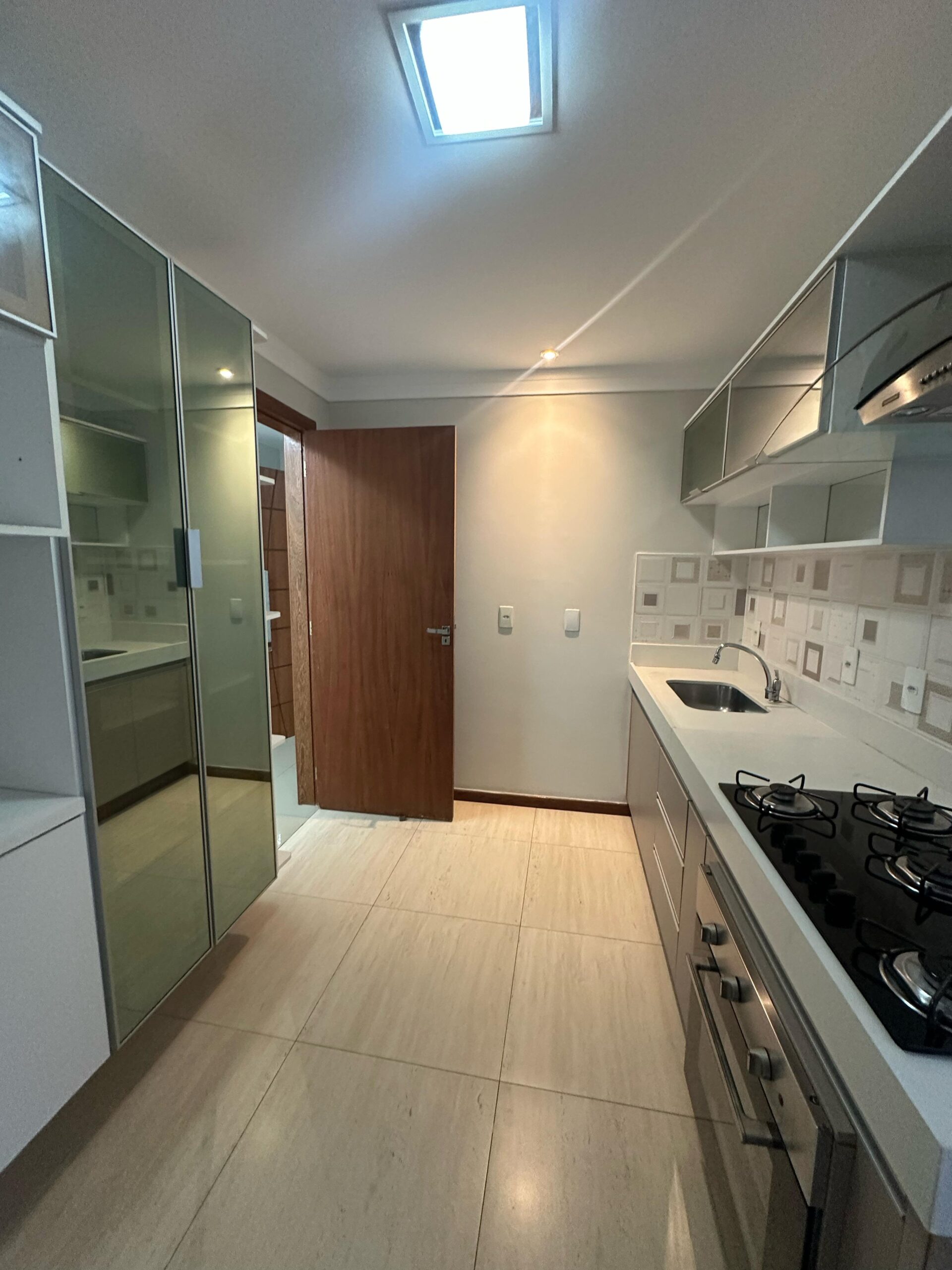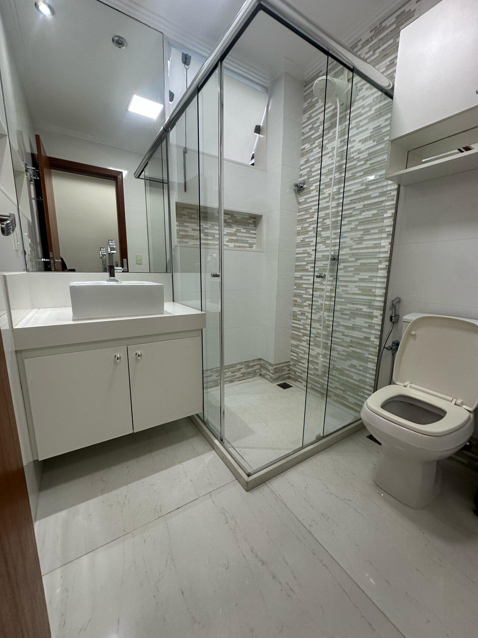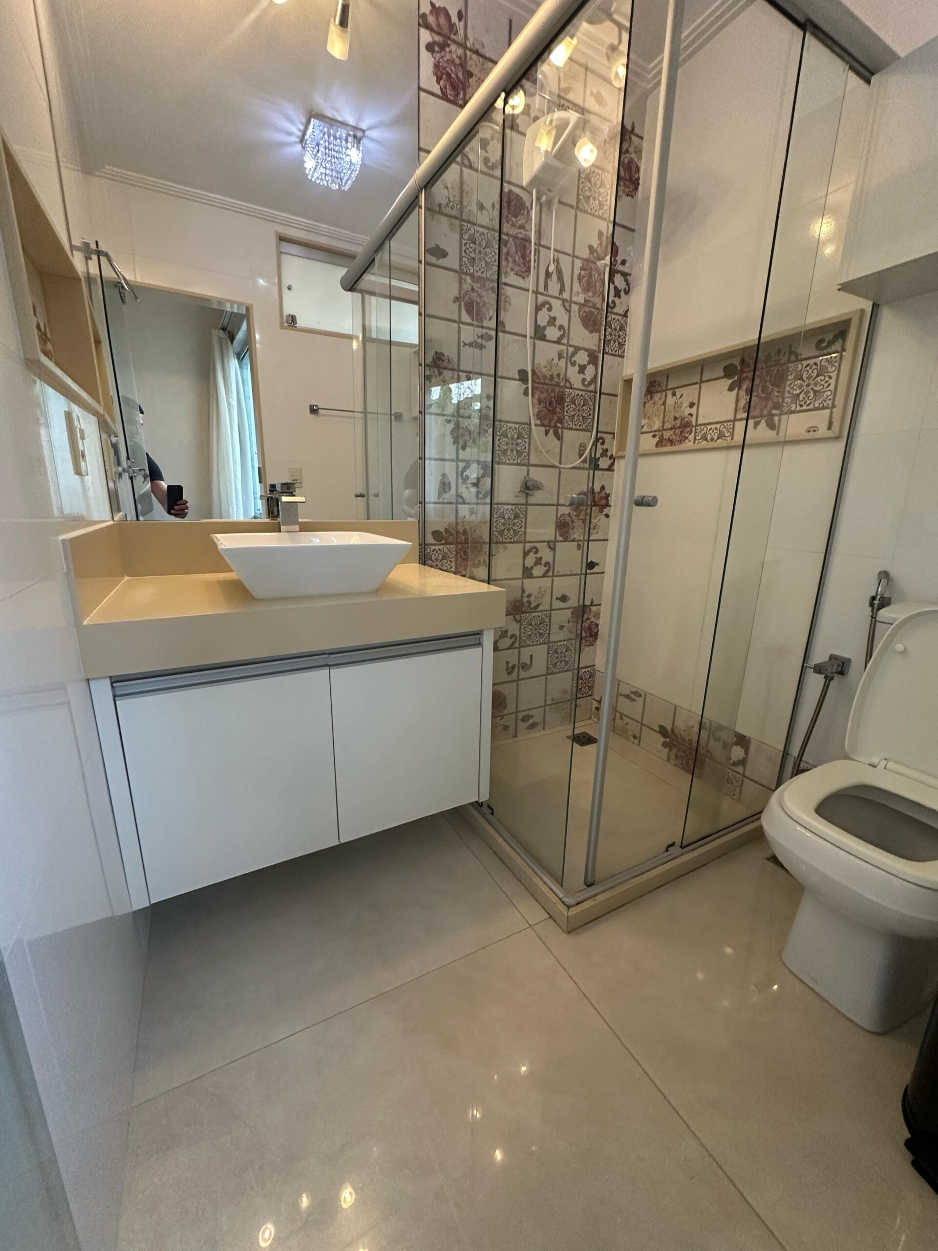 03 quartos sendo 01 suíte com armários e ar-condicionados, sala 02 ambientes, cozinha com armeiros, coifa e fogão, banheiro social com armário, área de serviço com armário e garagem