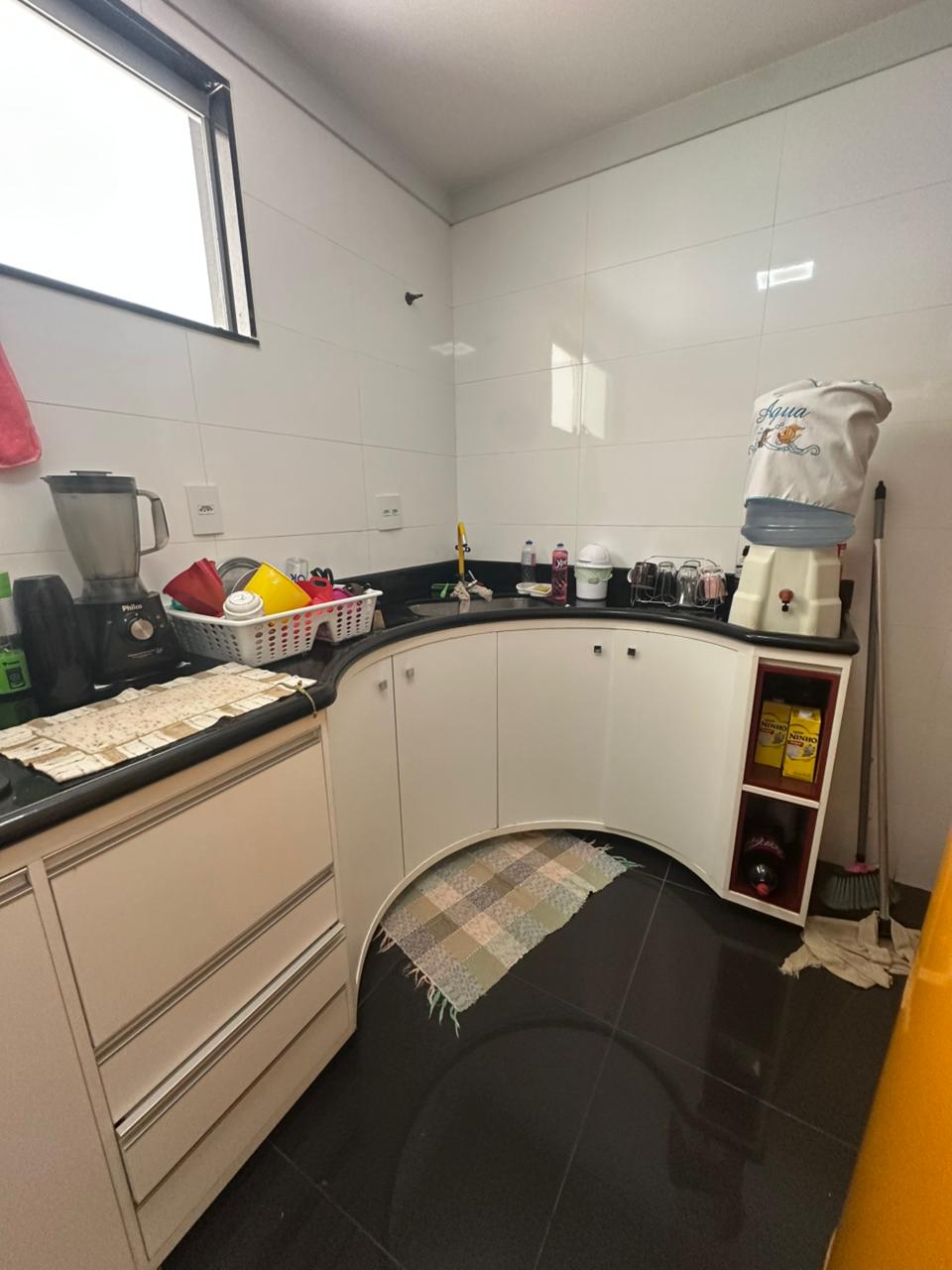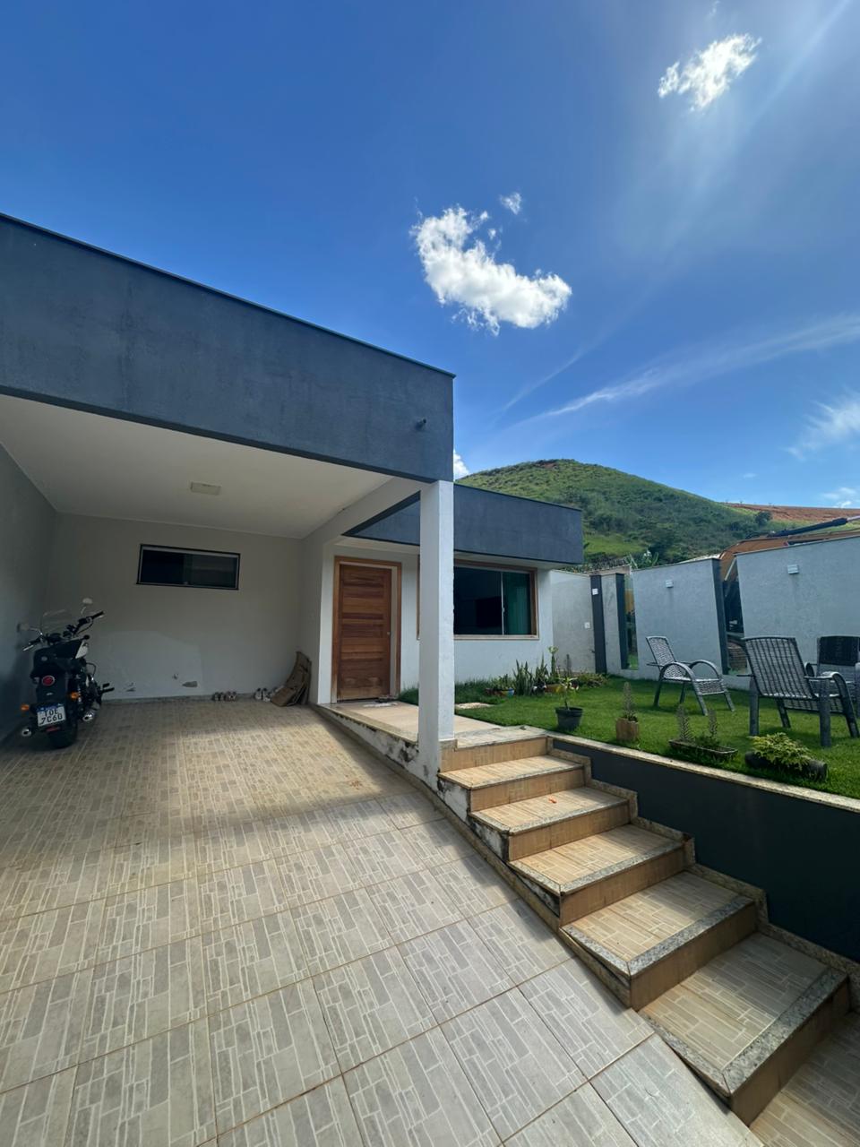 02 quartos sendo 01 suíte com ar-condicionado e armário embutido, sala com painel para tv e sofá, cozinha com armários, cooktop, geladeira e forno, banheiro social com armário, área de serviço com máquina de lavar, área externa com piscina, ducha e ducha, área gourmet com churrasqueira elétrica, forno de pizza e churrasqueira de alvenaria, 02 banheiros, dispensa e garagem para 02 carros
