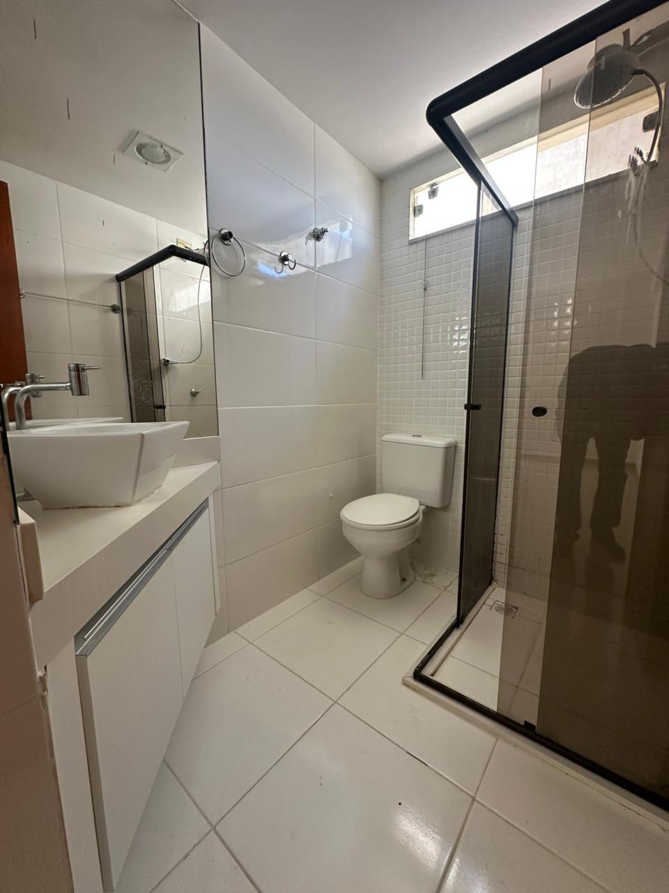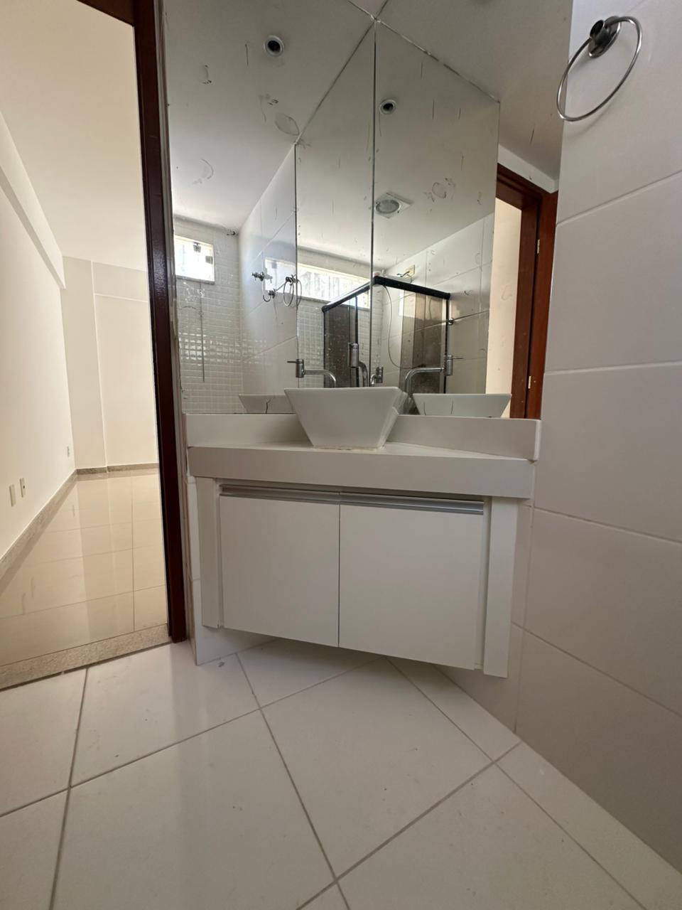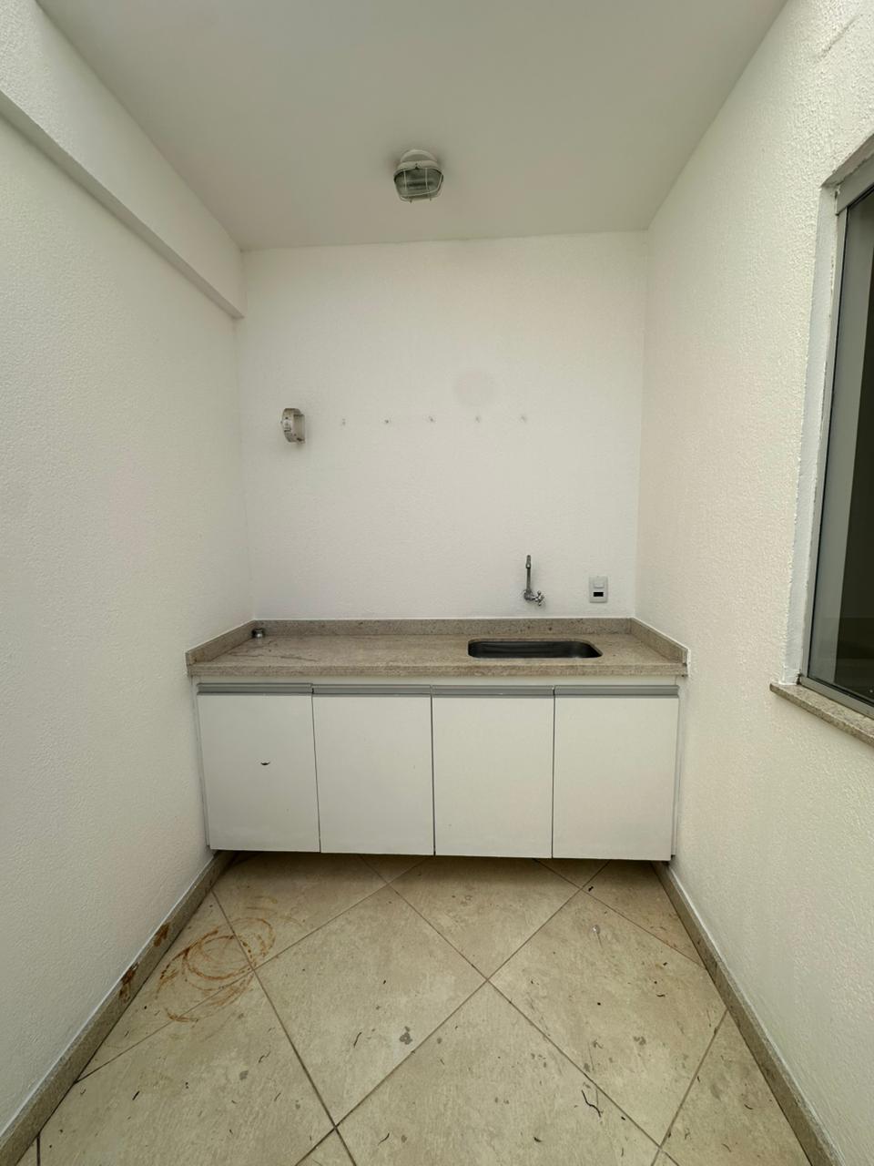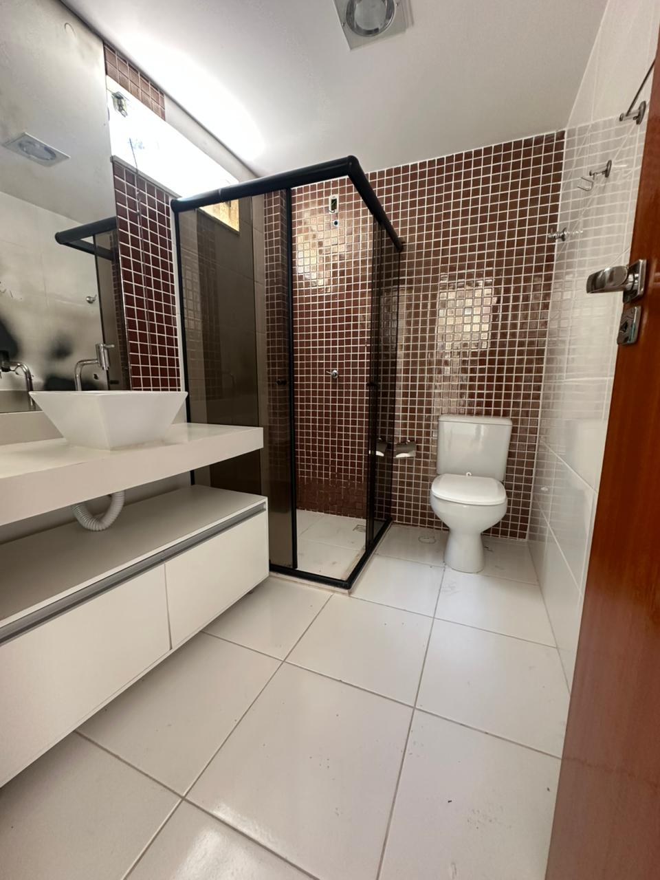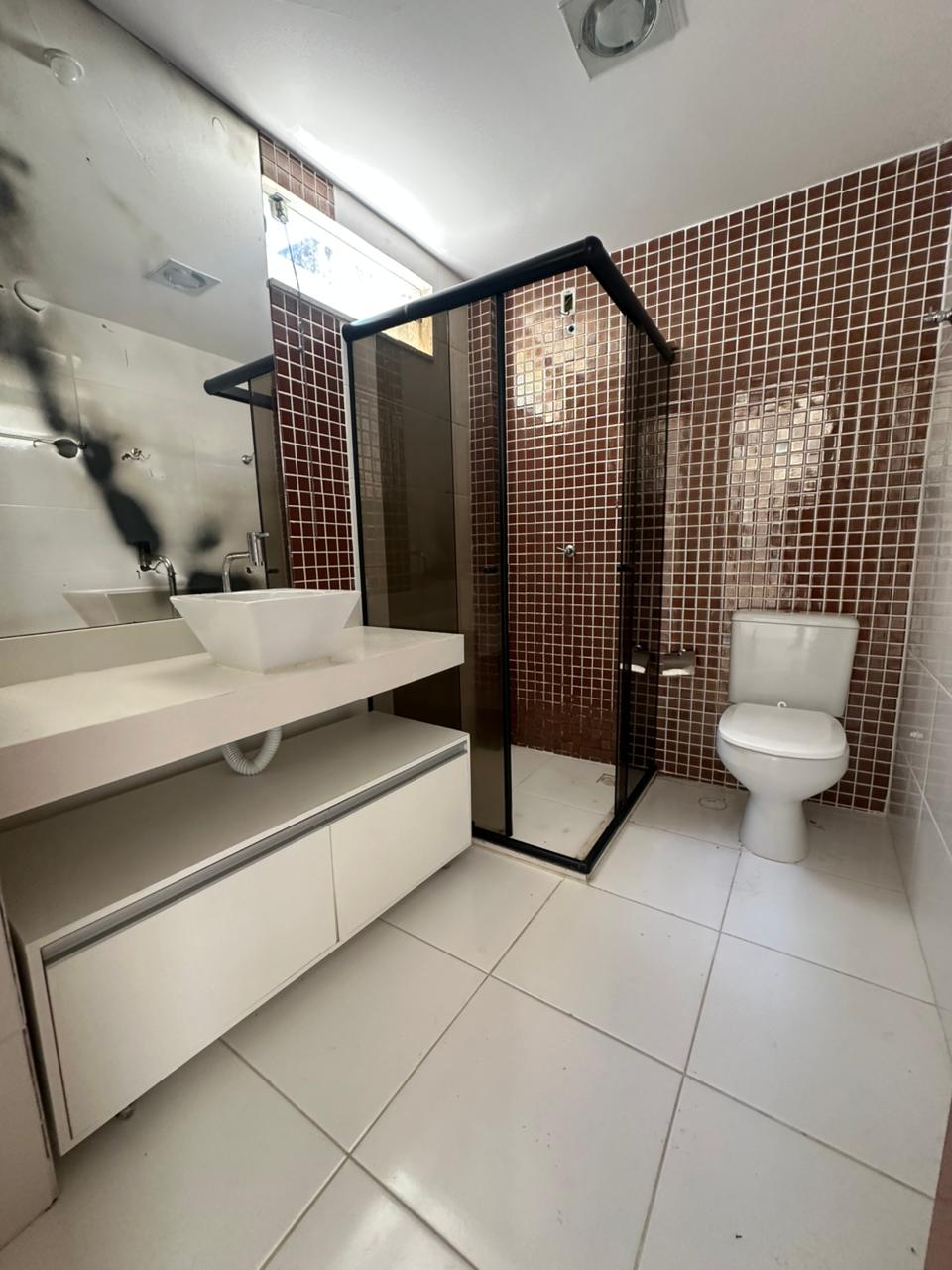 04 quartos suítes, sala ampla com lavabo, cozinha com armários, área de serviço com armário, área externa com pia, armário e ducha, e garagem
