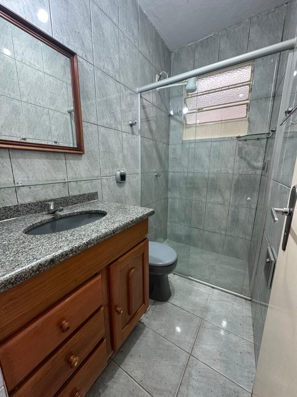 - Banheiro com armário e espelho