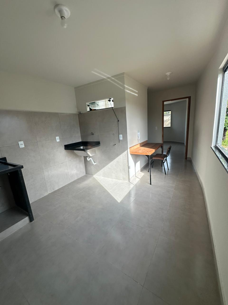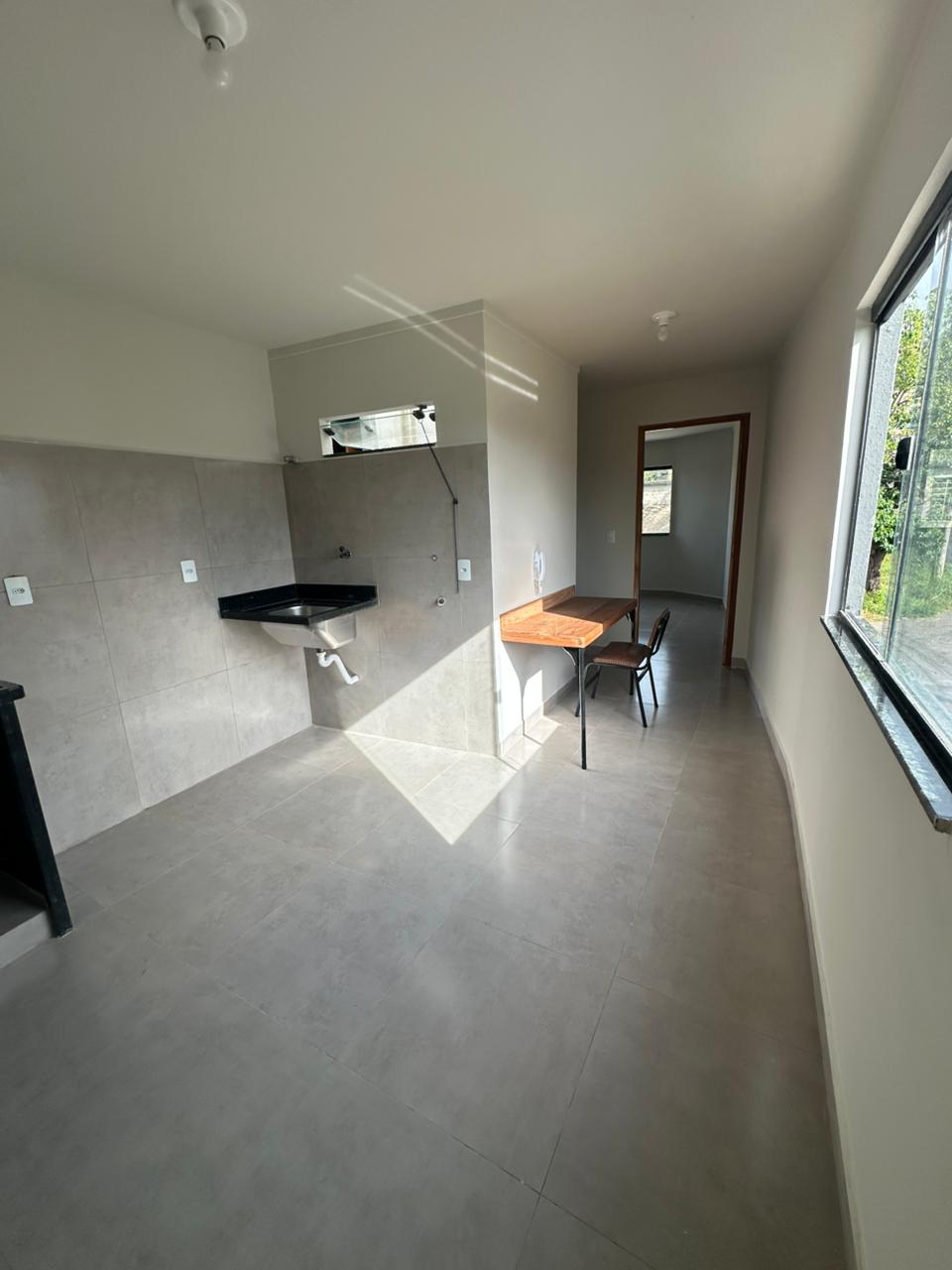 kitinet com 01 quarto, sala e cozinha conjugadas, área de serviço e banheiro