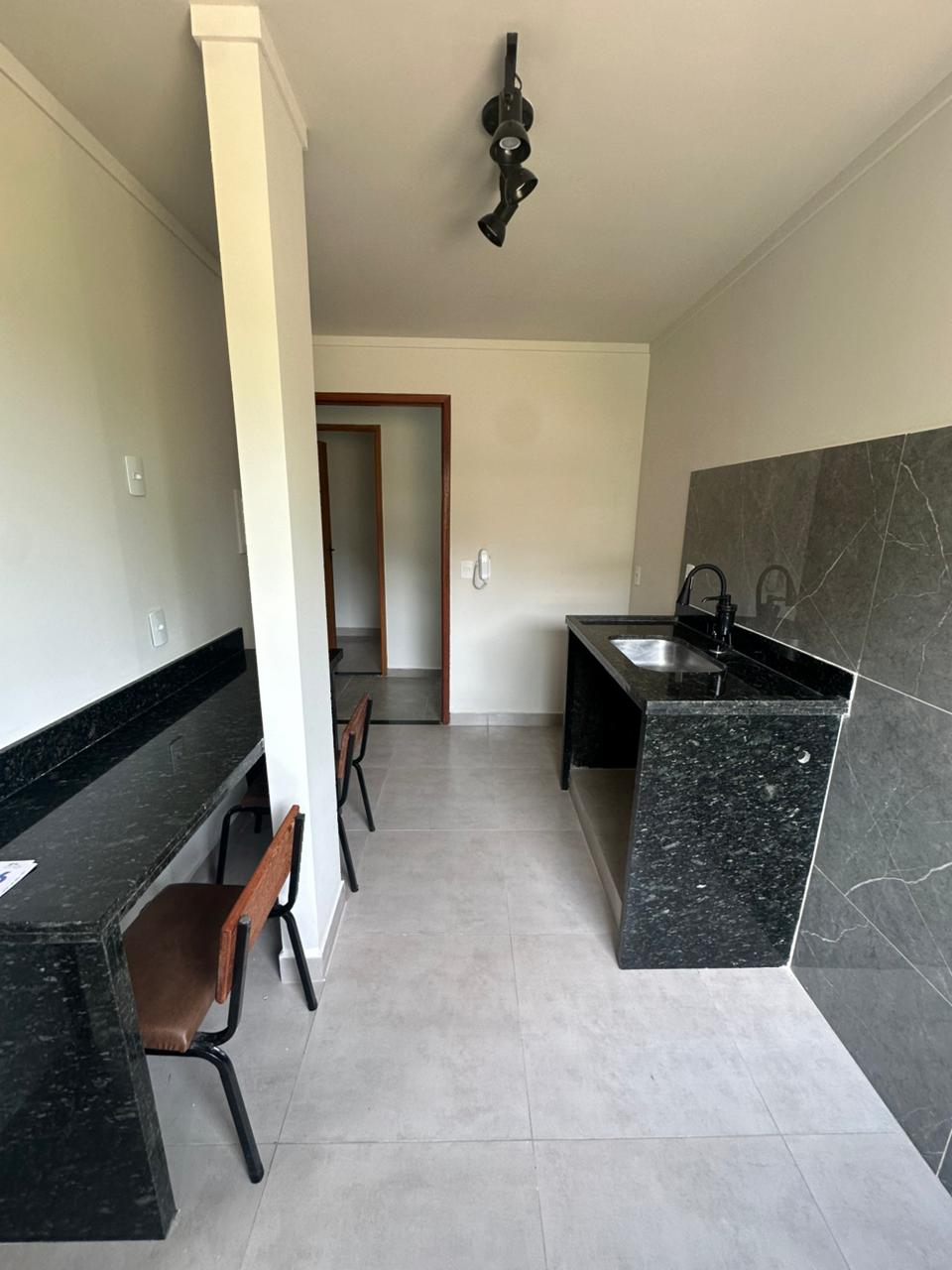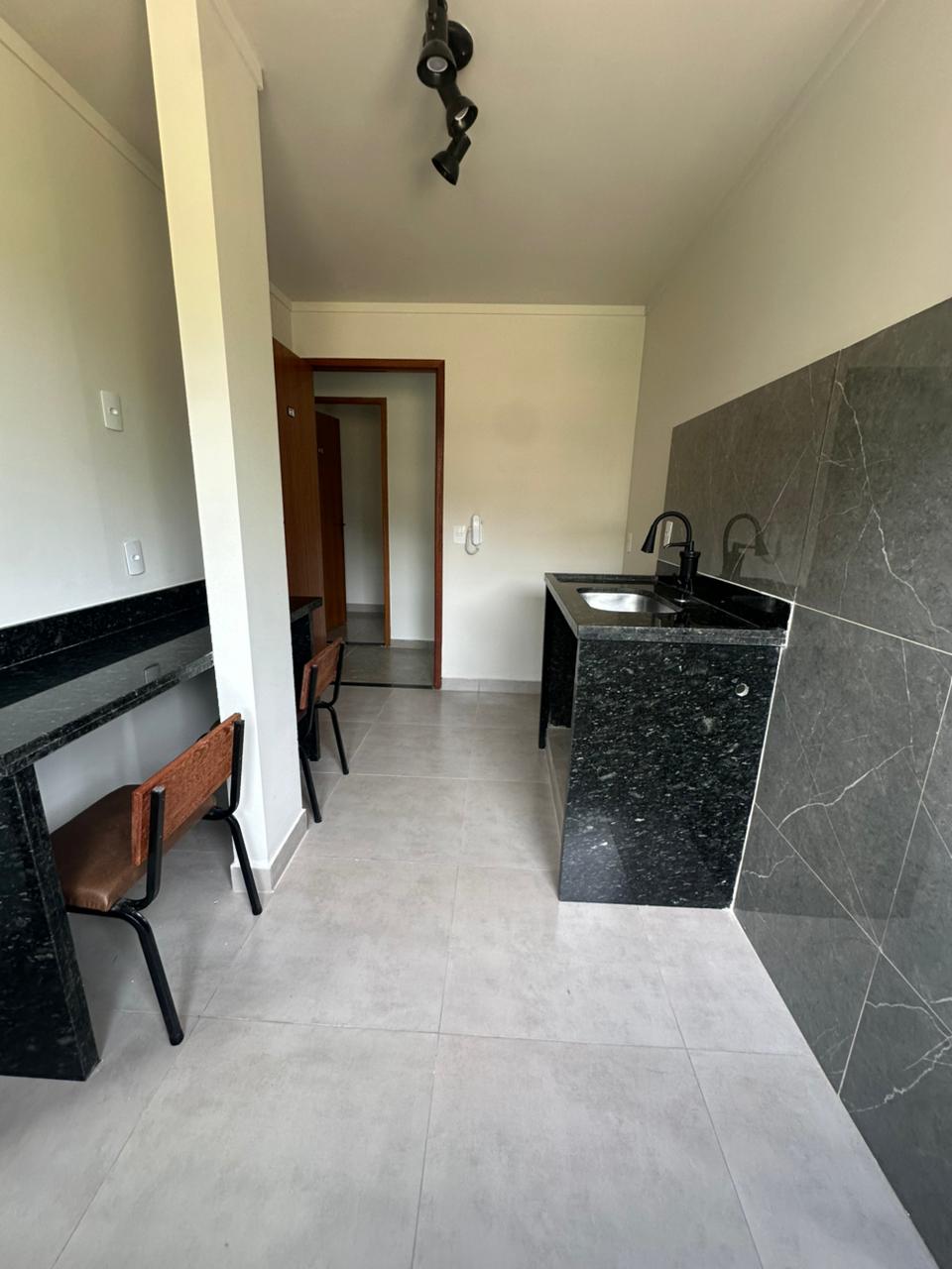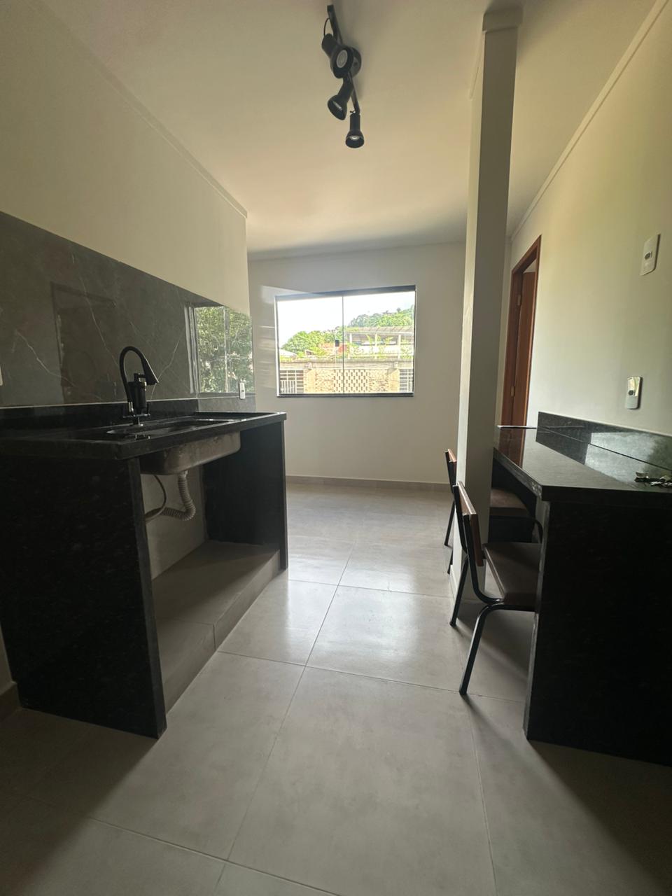 kitinet com 01 quarto, sala e cozinha conjugadas, área de serviço e banheiro